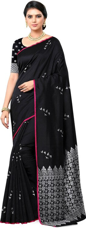 Jacquard Saree With Blouse For Women (Black, 6.3M)