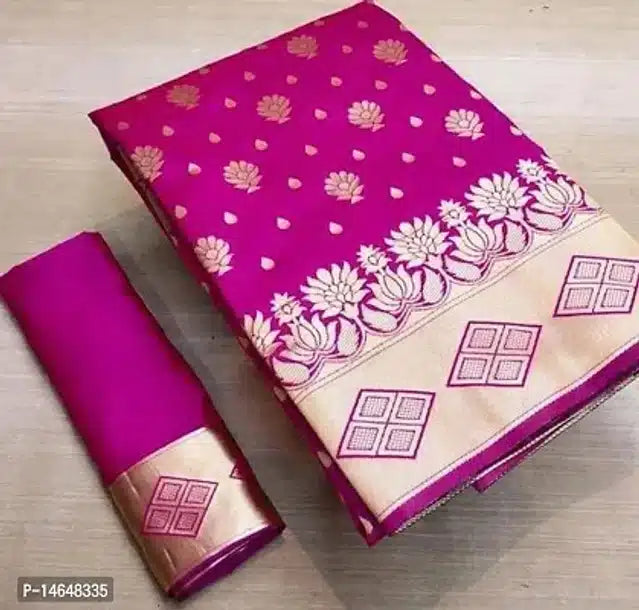 Banarasi Silk Saree With Blouse For Women (Golden & Purple)