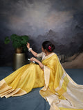Yellow Zari Aesthetic Soft Chex Weaving Saree