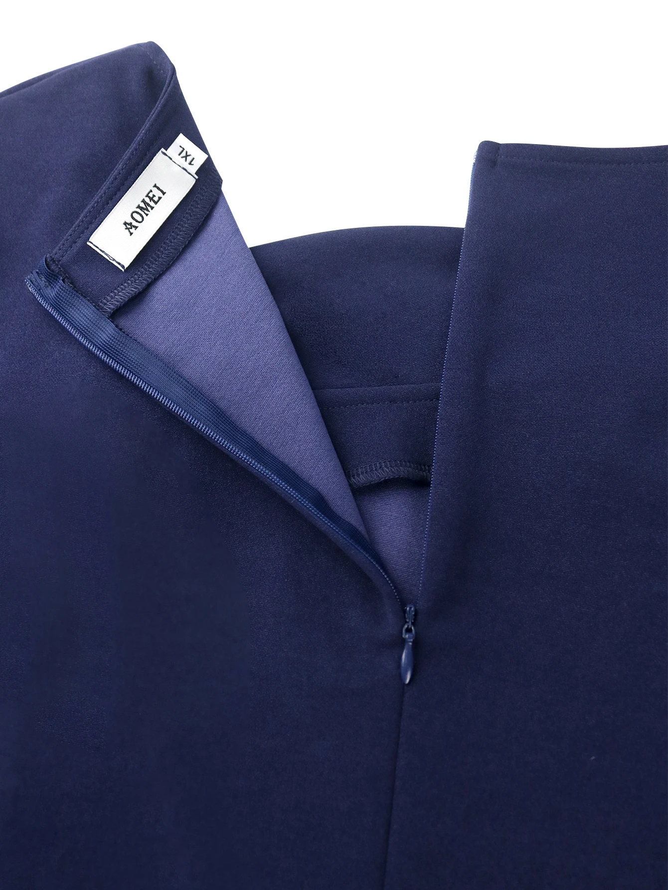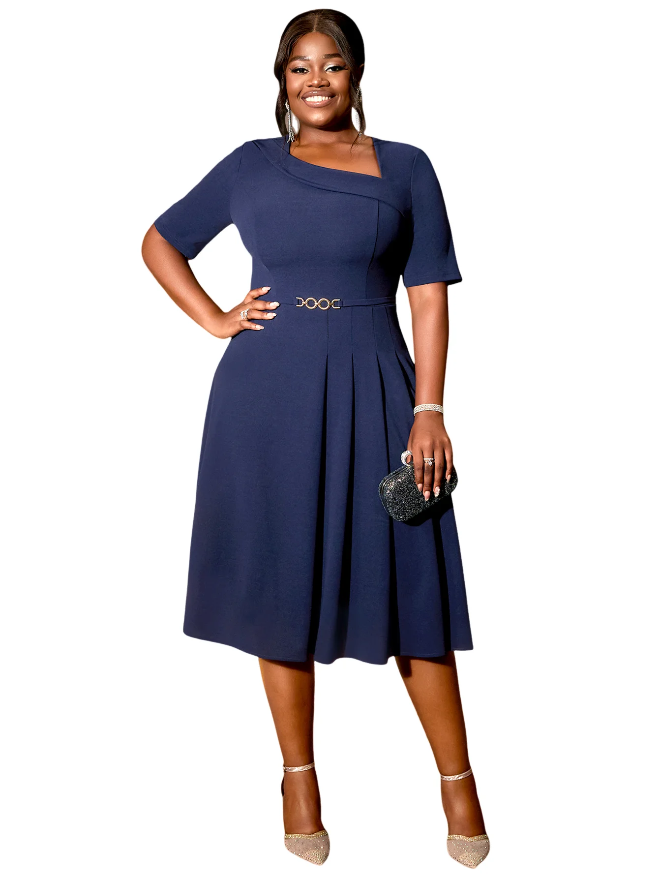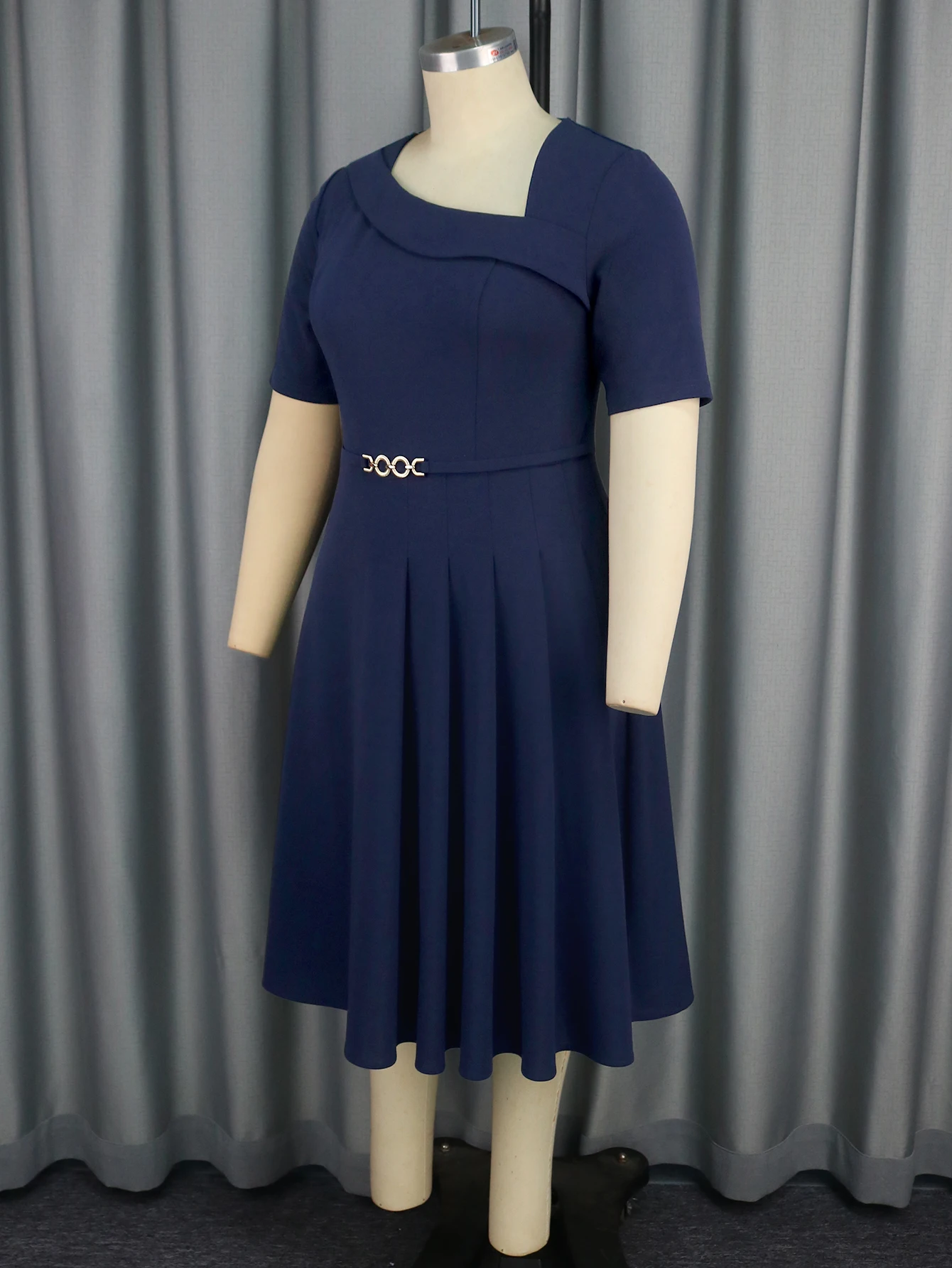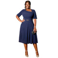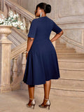 Navy Blue AM040926 Asymmetry Neck Short Sleeves Dress