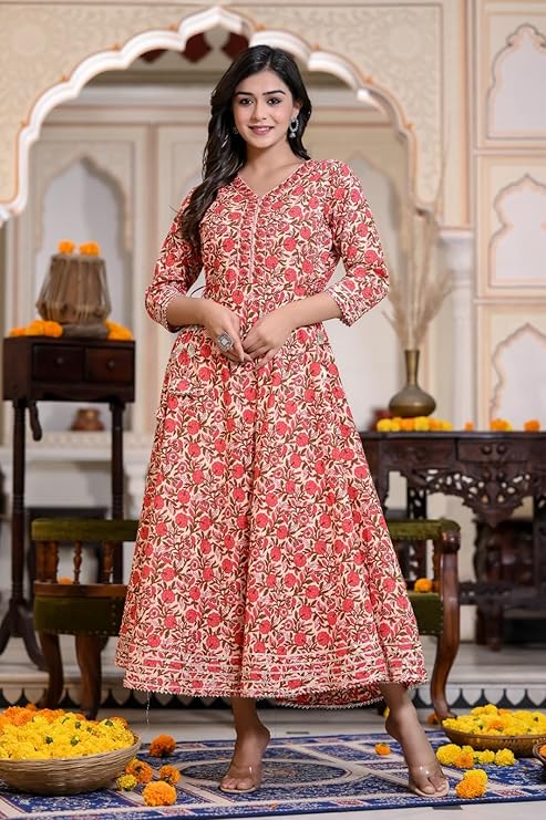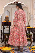 Red Floral Cotton Anarkali Kurti for Women