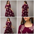 Maroon Brown Cotton Printed Anarkali for Women