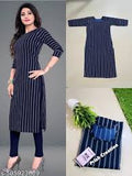 Elevate your wardrobe with this stunning Black & Blue Striped Crepe Kurti Combo – where classic stripes meet contemporary elegance in a perfect duo. This pack of 2 brings together the timeless sophistication of black and the refreshing charm of blue, both featuring stylish striped patterns on premium crepe fabric. It's the perfect blend of versatility and style, giving you two complete looks that effortlessly transition from casual to chic! 🖤💙