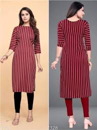 Combo Black & Red Striped Crepe Kurti (Pack of 2)