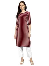 Crepe Striped Kurti for Women (Black & Red, S) (Pack of 2)