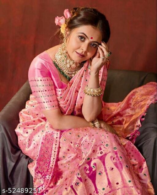โจย Premium Pink Silk Sareeย - Beautiful bridal designer saree for women ๐