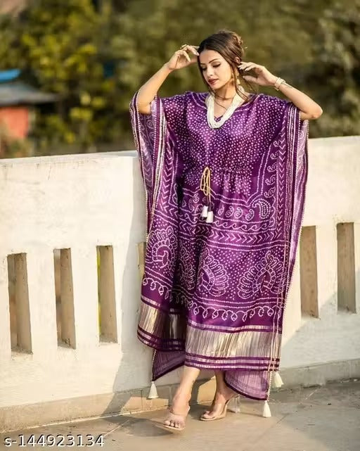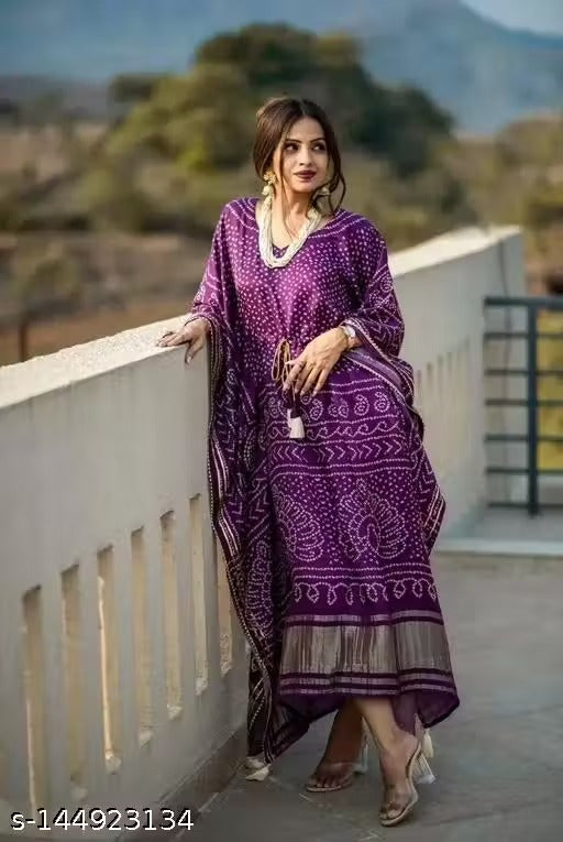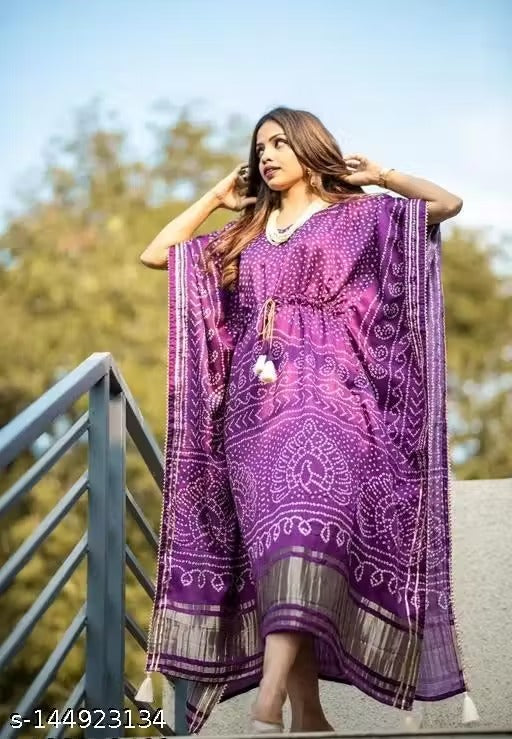 This Violet Kaftan stands out with its deep, rich shade and flowing style. Great pick for festive evenings.