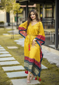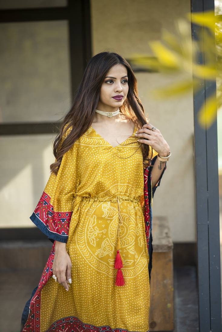 Yellow Kaftan with Red Lining
