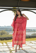 Make a statement with this Red Kaftan featuring diva-style dot prints. Perfect blend of comfort and festive shine.