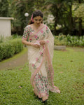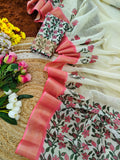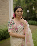 ๐จ Color: Off-White with Pink Floral Print (Pink Border & Matching Blouse)