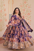 Purple Floral Silk Anarkali with Dupatta