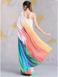 Step into dazzling elegance with our Rainbow Sequin Saree, a breathtaking fusion of vibrant colors and glamorous sparkle. This show-stopping piece features a pristine white base that gracefully transitions into a mesmerizing rainbow gradient adorned with shimmering sequins. Perfect for making a bold statement, this saree captures light beautifully and ensures you'll be the center of attention at any celebration.