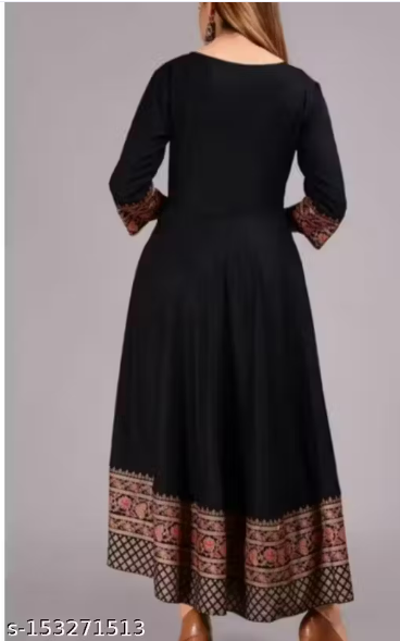 Look stunning in this beautiful Black Printed Anarkali Kurti! Made from soft rayon fabric that drapes elegantly and feels comfortable all day. The classic black color with beautiful prints makes it perfect for any special occasion. The Anarkali style flows gracefully and flatters every body type. Easy to style with your favorite accessories – dress it up for parties or keep it elegant for celebrations! 🖤✨