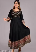 Rayon Printed Anarkali Kurti for Women (Black, S)
