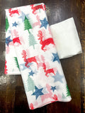 🤍❄️🦌 Snowy White Linen Saree with Reindeer & Tree Print