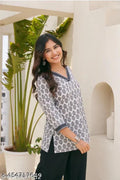 Stylish White Multicolor hand block print cotton kurti for Girls and Women