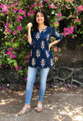 The "Trendy Fashionable Block Print Blue Color Kurtis" is a stylish and contemporary piece that blends traditional craftsmanship with modern flair. Made from soft, breathable fabric of rayon, this kurti features intricate block prints in a beautiful blue color, adding a fresh and vibrant touch to your wardrobe.